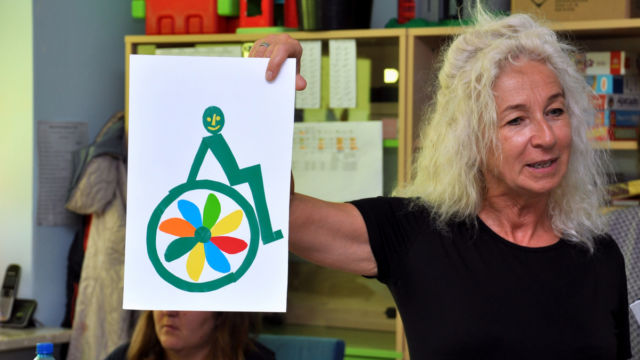 Warsztaty prowadzą animatorka Magda Matusiak związana z Fundacją Aktywnej Rehabilitacji i artystka Joanna Świerczyńska. Magda opowiada o życiu osoby z niepełnosprawnością ruchu. Dzieci zadają pytania, bardzo śmiałe, często dotykające bolesnych czy wstydliwych tematów. Magda na nie odpowiada. Dzieci uczą się jeździć na wózku. Pod okiem artystki próbują projektować szkoły, klasy, toalety, ulice dostępne dla wszystkich. Rysują dla Magdy laurki, żeby jej podziękować, śpiewają piosenki, są bardzo poruszone.